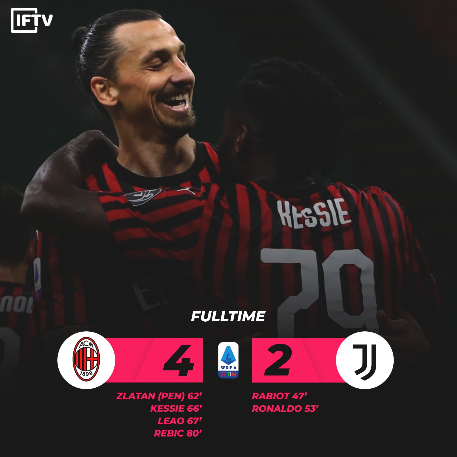 Italian Football Tv On Twitter 47 Milan 0 1 Juve Rabiot 53 Milan 0 2 Juve Ronaldo 62 Milan 1 2 Juve Ibra 66 Milan 2 2 Juve Kessie 67 Milan 3 2 Juve Leao 79 Milan 4 2