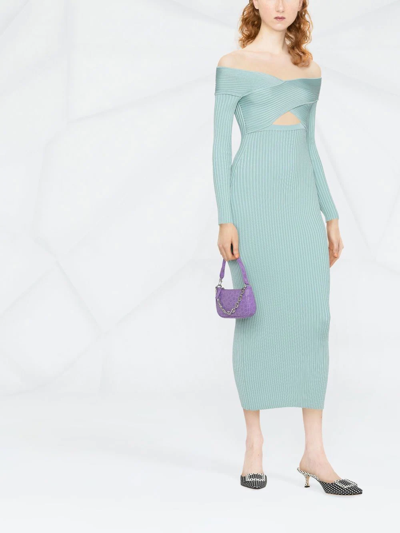 Self Portrait Women S Ribbed Knit Off The Shoulder Midi Dress In Blue Modesens