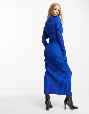 Other Stories Rib Knitted Midi Dress In Blue Asos
