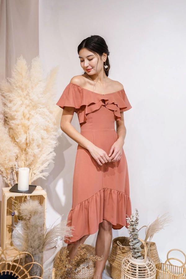 Neonmello Eulalia 2 Way Ruffled Hi Lo Midi Dress In Tea Rose Women S Fashion Dresses Sets Dresses On Carousell